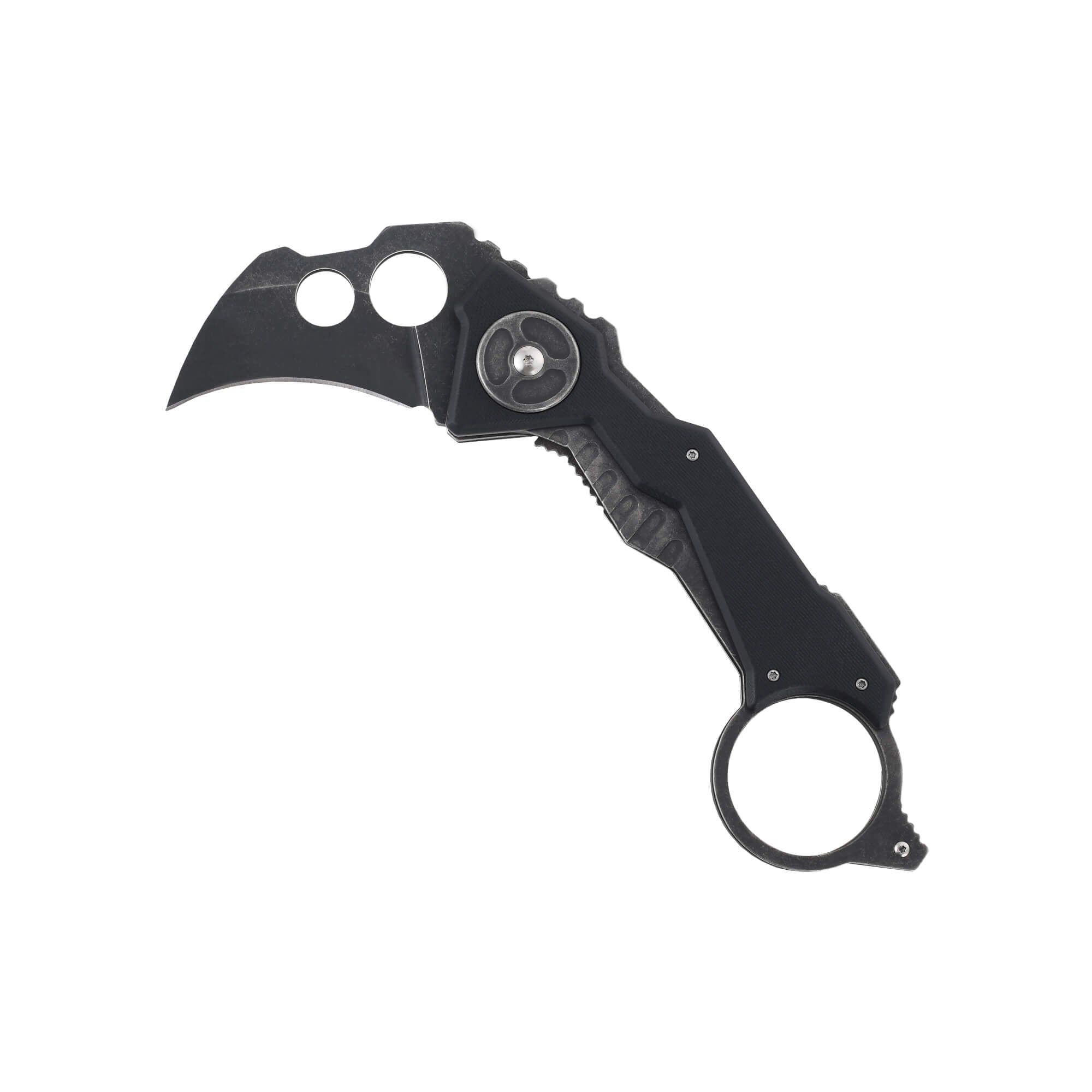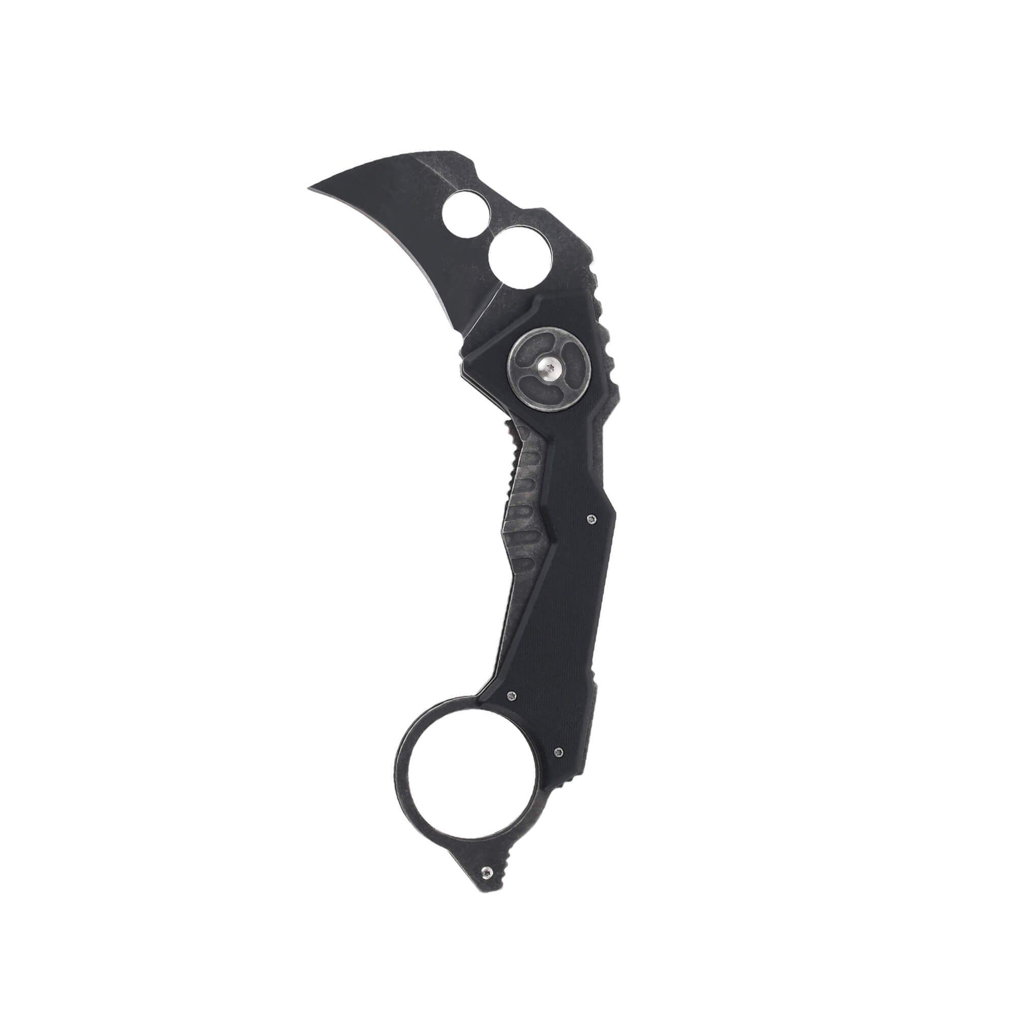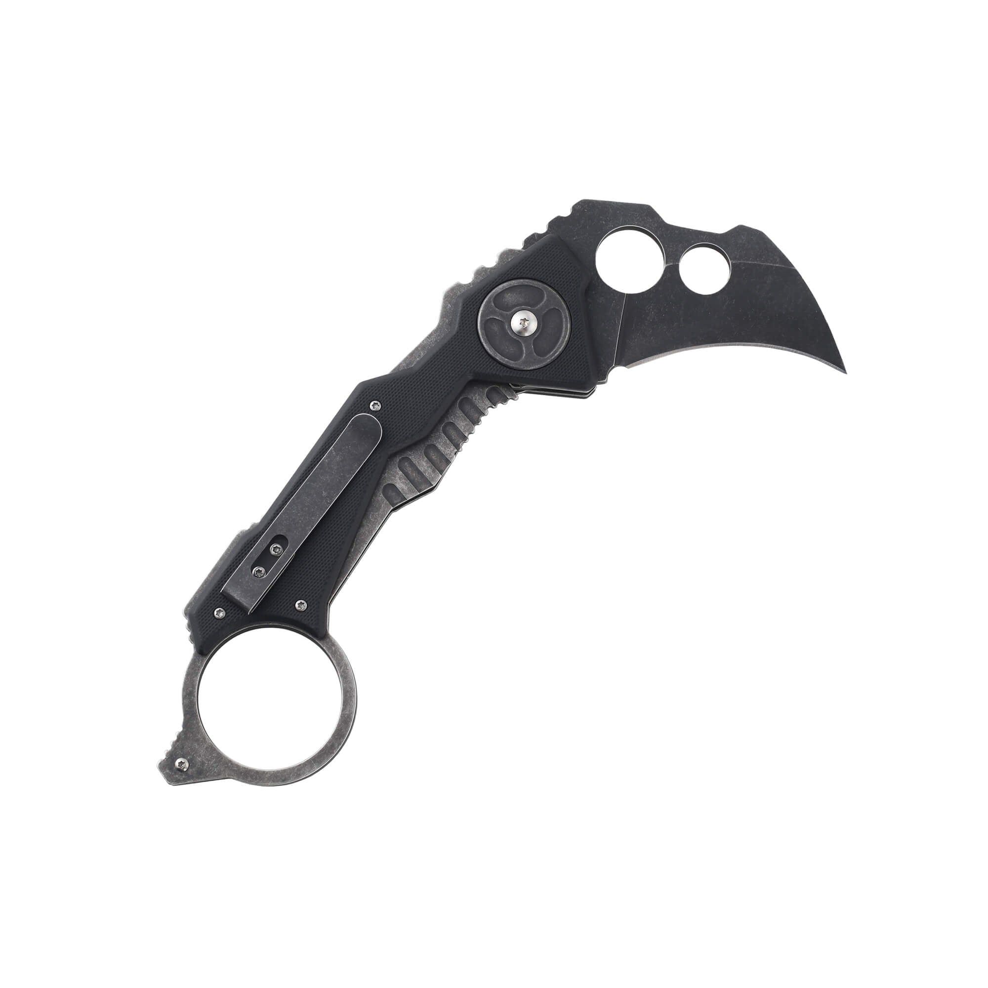 The Graze is a folding blade knife made out of aluminum alloy steel that features a G10 handle. It's fast opening and features a waist clip on the back and a karambit style blade.
