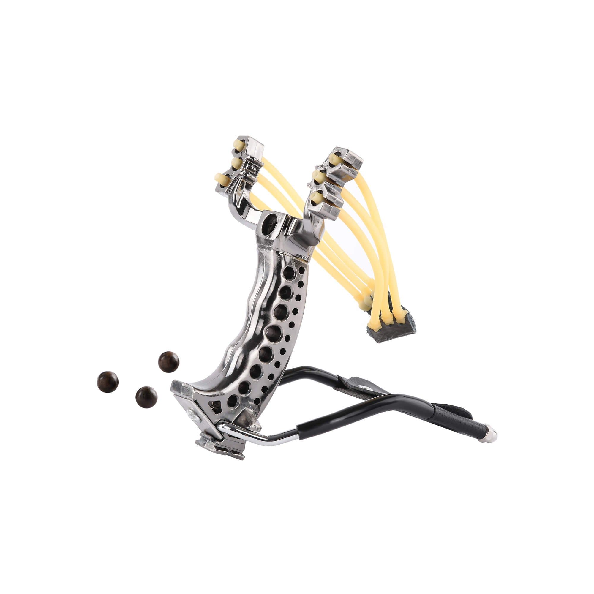 The Ballista-01 is a metal Slingshot with a durable support frame, high tension triple rubber bands, ergonomic handle grip. The design works for right and left handed shooters!