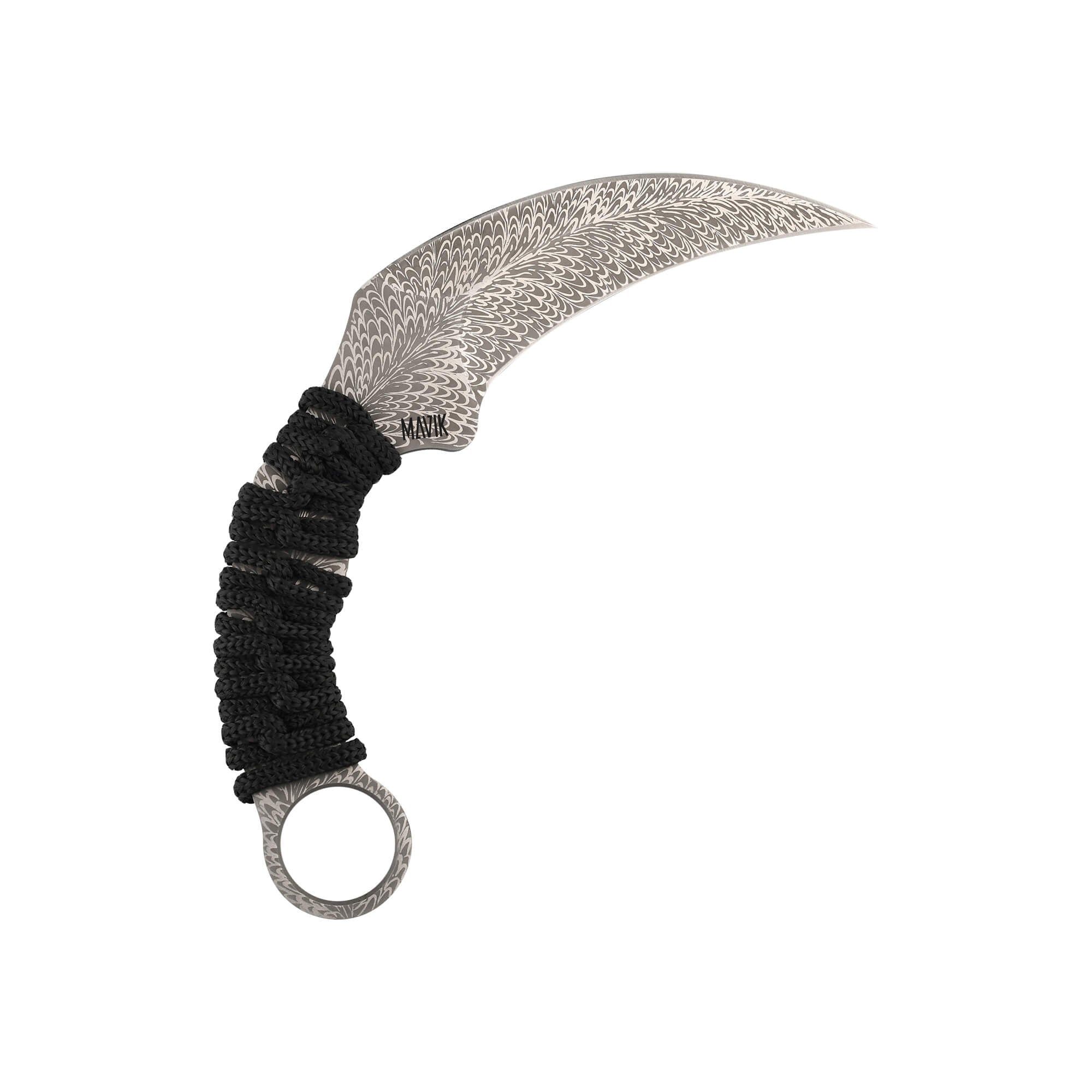 The beautiful Crius is a elegant fixed blade that features a paracord grip. It comes with an etched leather sheath.