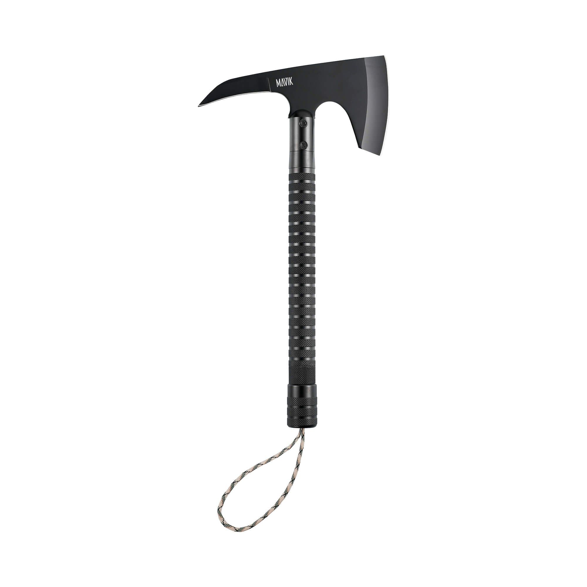 The BEAK AX, a multi-feature, sturdy, camping tool. Included is one easy to store frame is a compass, a concealable knife, a can opener, wood saw, glass breaker, and a fire starter. The ax comes with a canvas sheath for safe transportation.