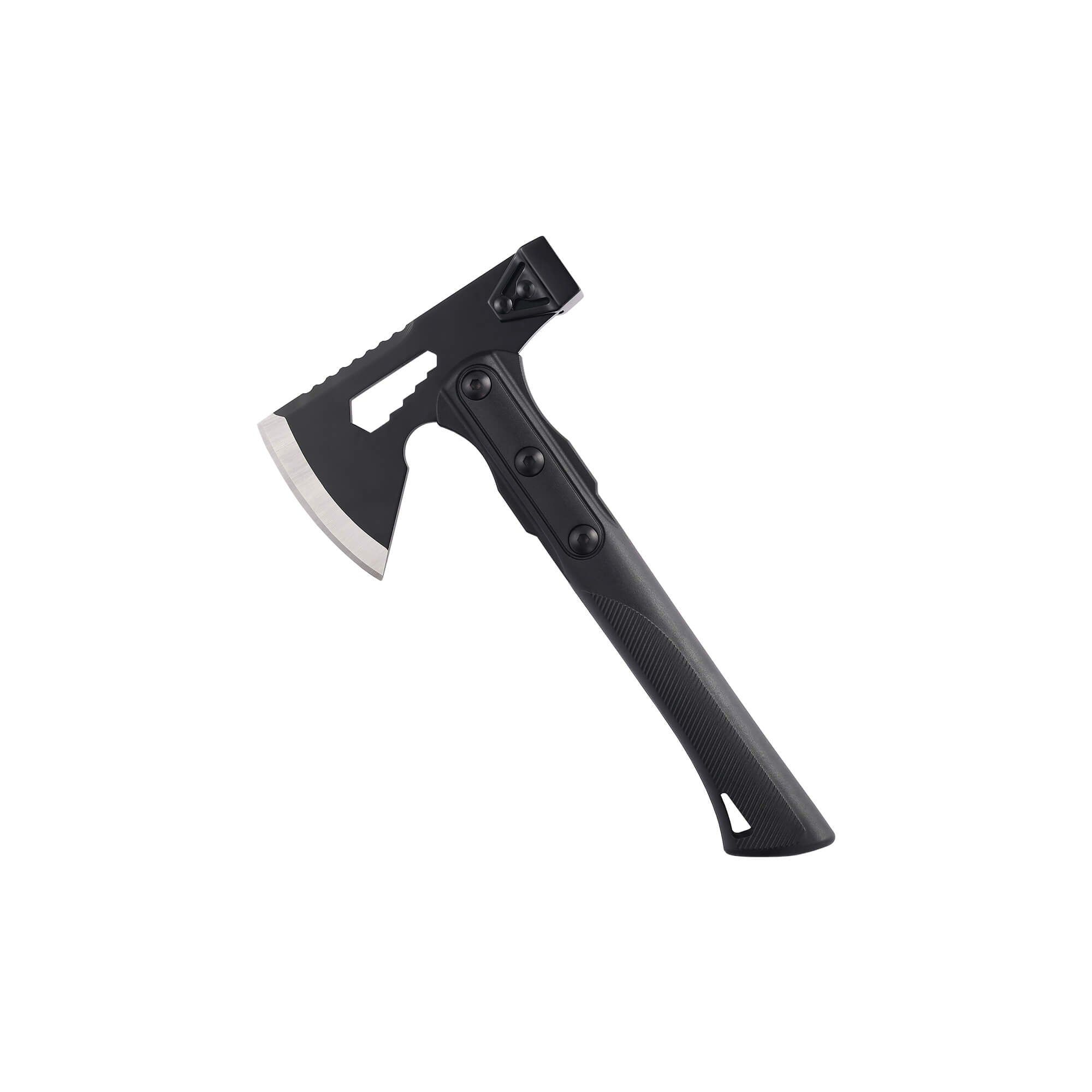 The Eagle Ax, a multi-feature, sturdy, camping tool. The anti-slip handle and the strong blade create a perfect balance between power and sustainability.