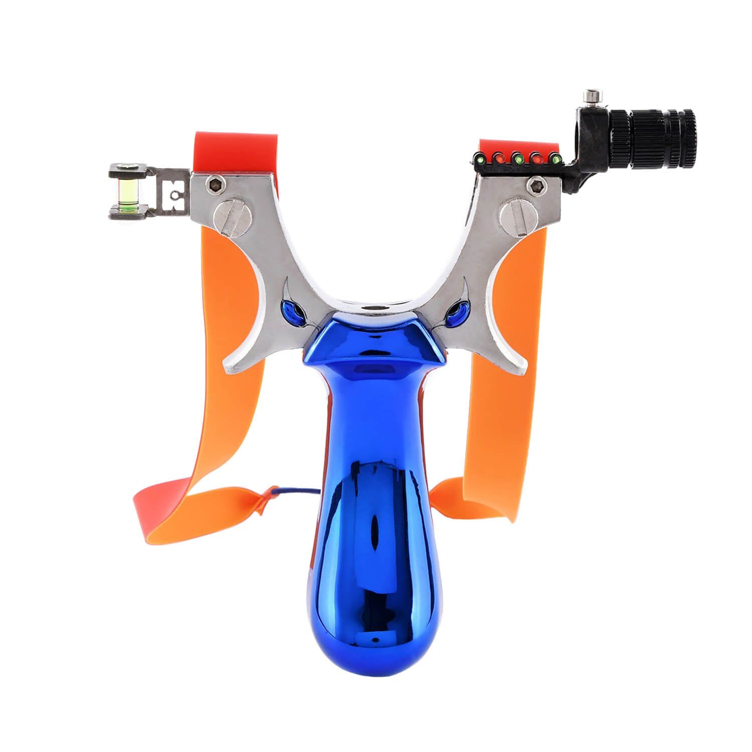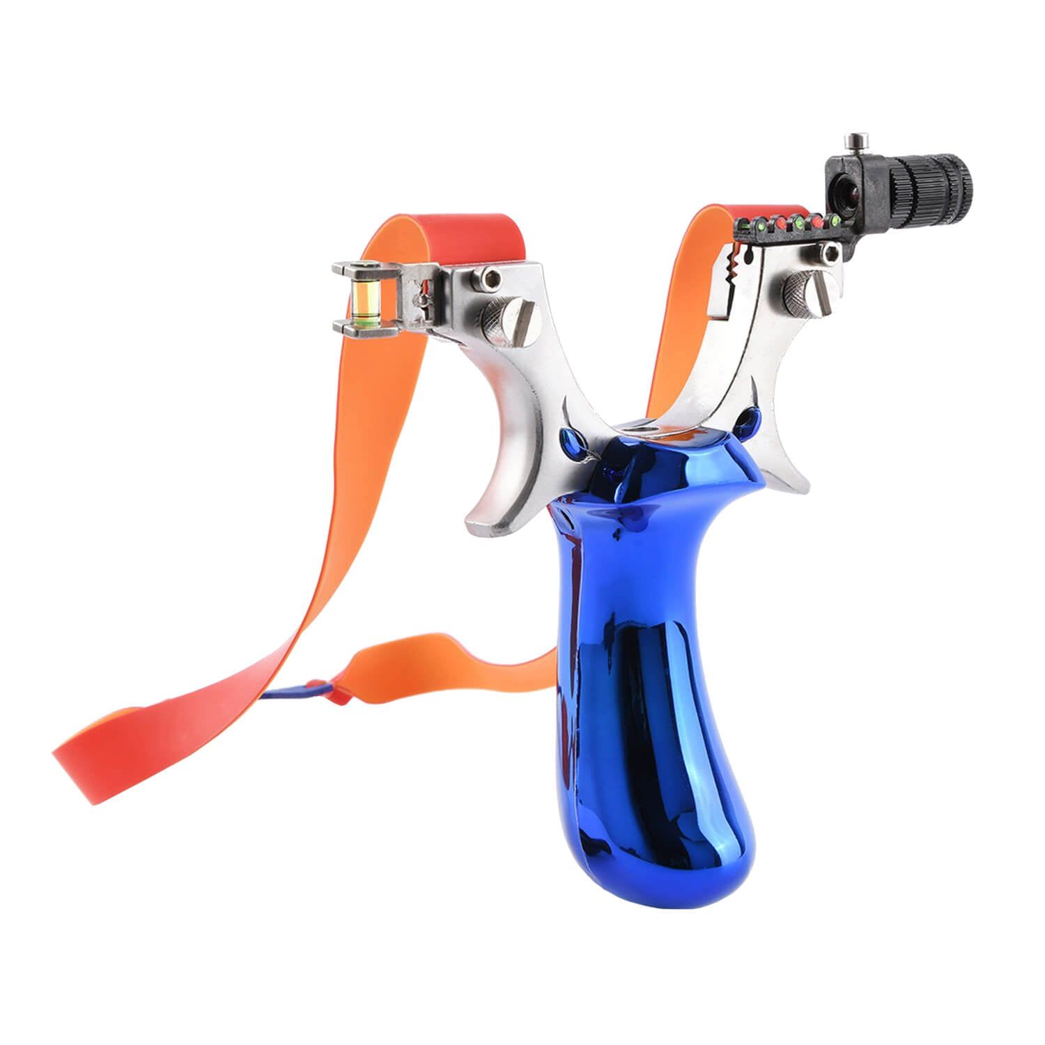 The eye catching Ballista 24 is a blue slingshot featuring a gradienter for better aiming. The slingshot come with two high-tension rubber bands and a sleek grip designed for comfort.