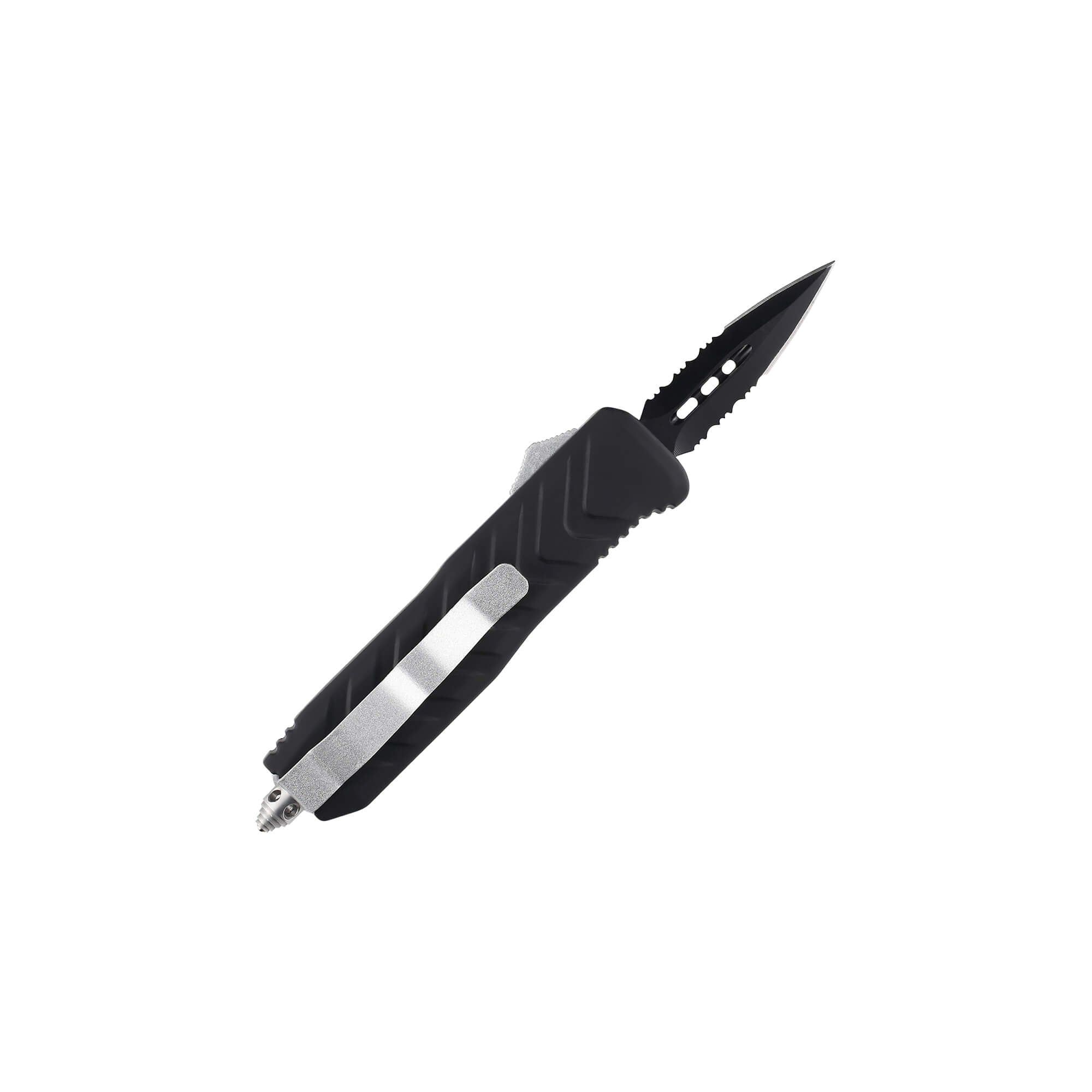 The Tint Serrated is a smooth mini automatic OTF knife that you just can't stop playing with. The small serrated blade is a customer favorite. This knife comes complete with a pocket clit and lanyard hole.