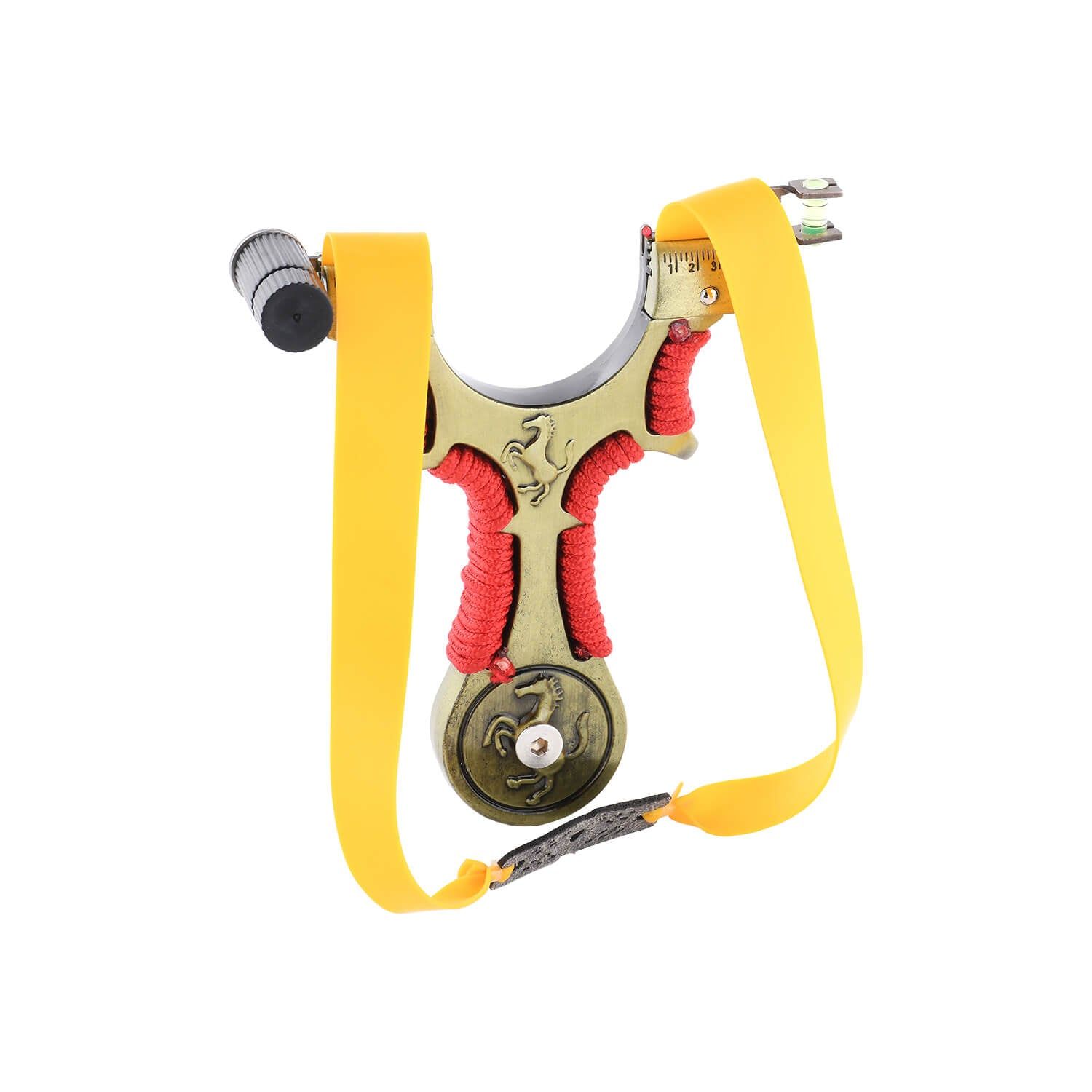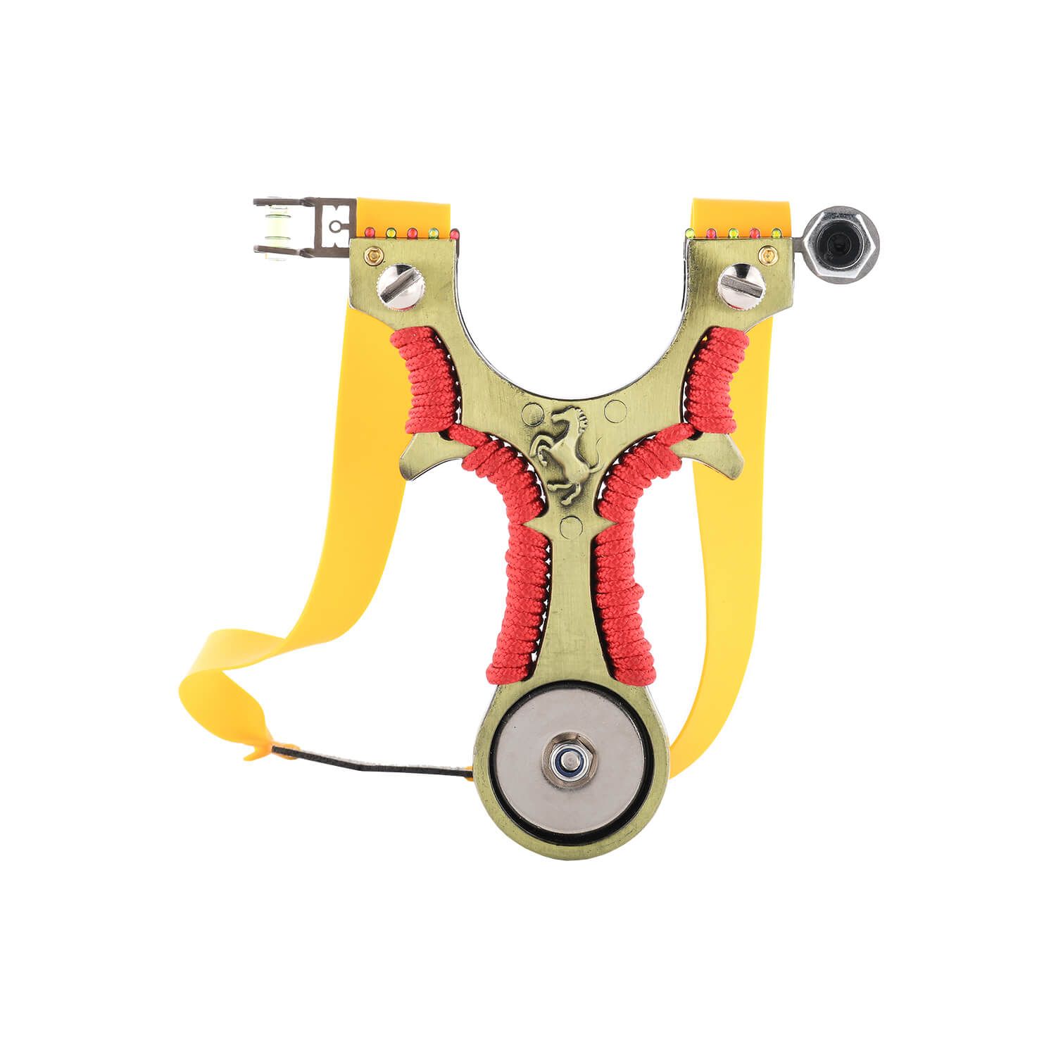 This Ballista 10 tactical slingshot comes with a non-slip paracord handle for peak grip. A powerful shot is generated by two high-tension rubber bands. A gradienter and detachable laser sight offer precision aim.