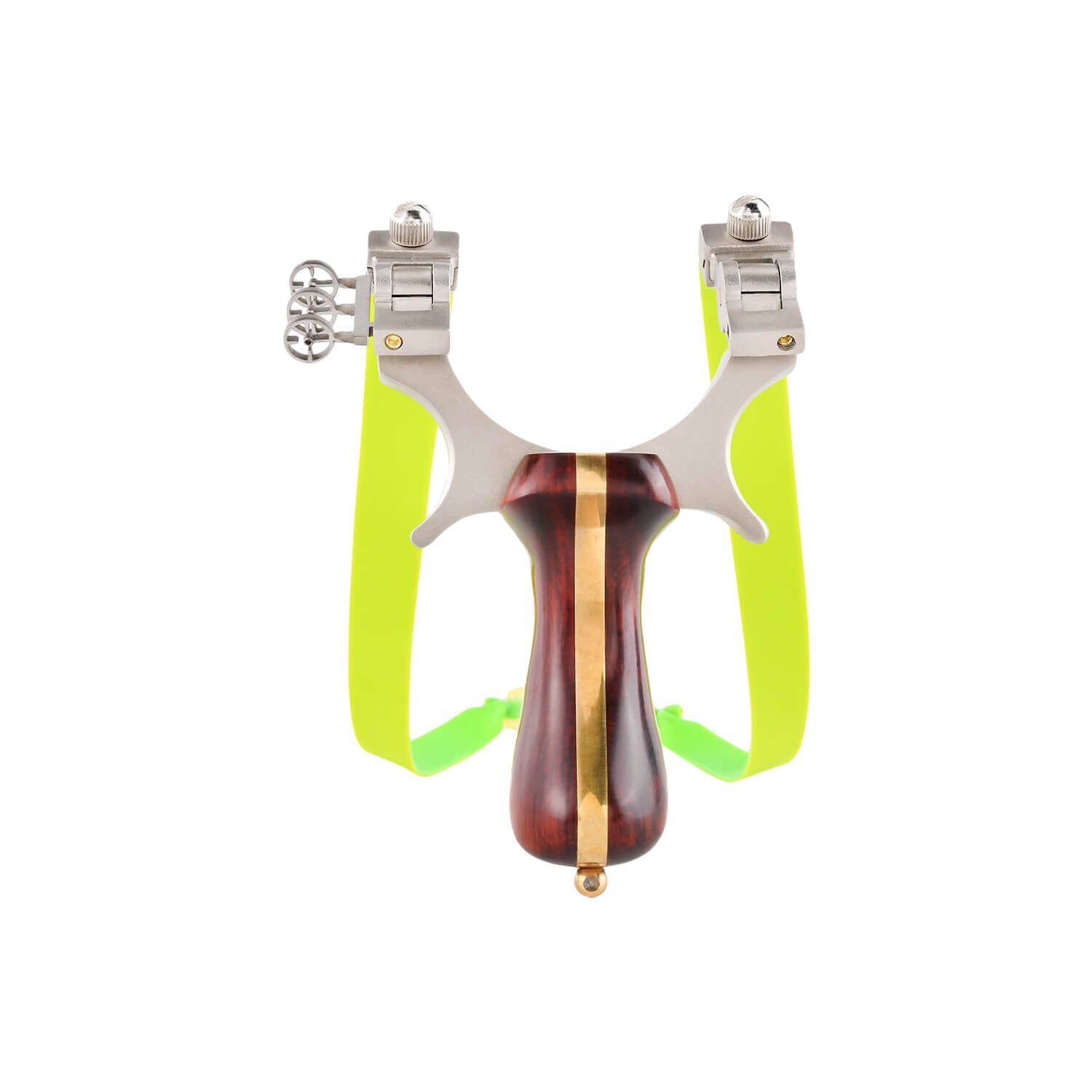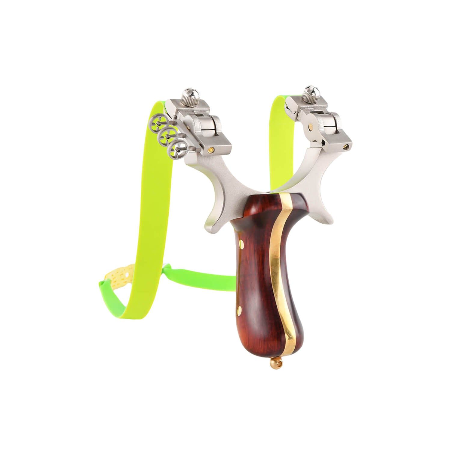 The Ballista 23 is designed with a sandalwood trim on the precisely curved handle offering comfort and stability. This elegant tactical slingshot comes with two snap resistant rubber bands.