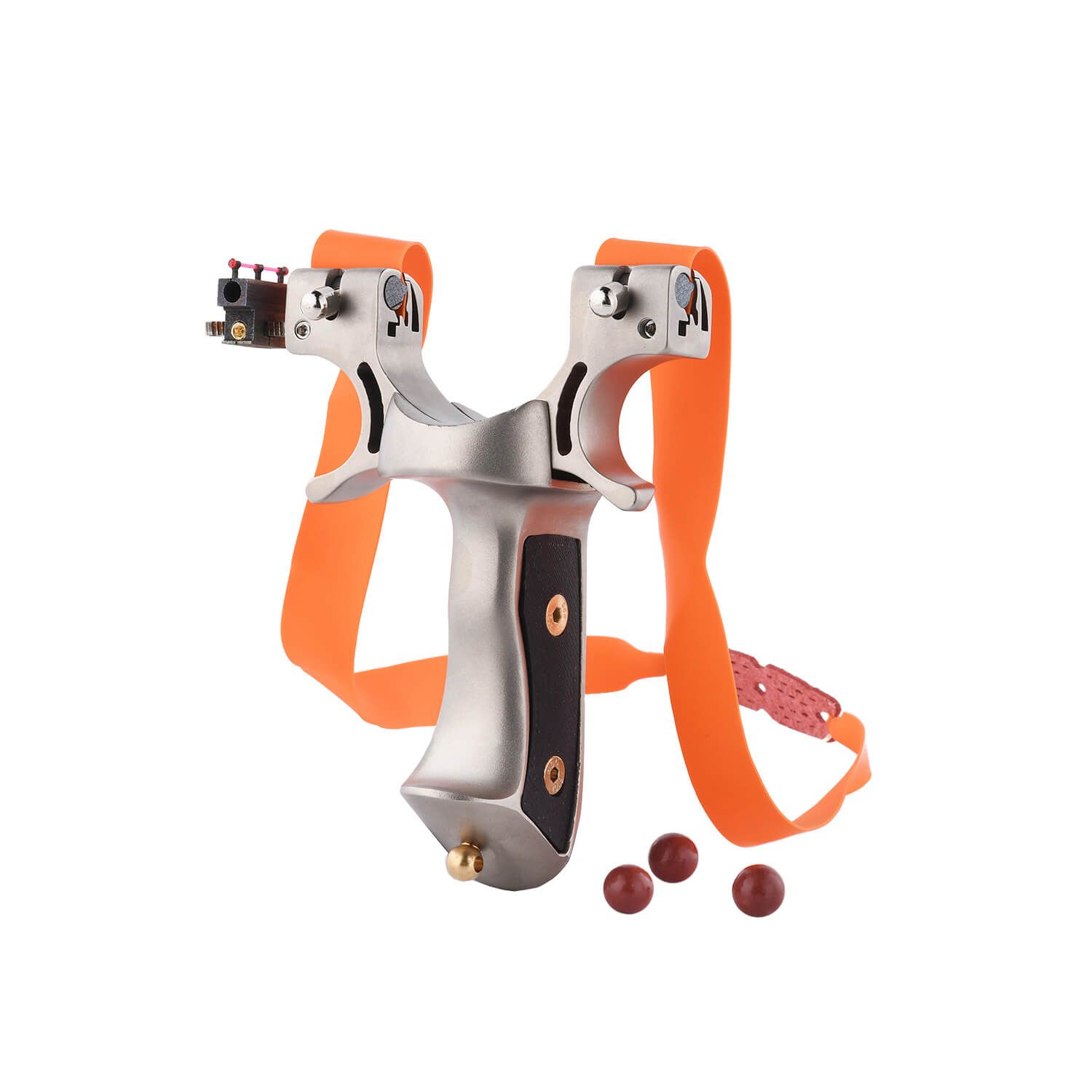 Sleek, comfortable, and powerful, the Ballista 16 tactical slingshot is designed with a non-slip grip and a curved handle for better functionality and comfort. This model comes in silver and packs two high-tension rubber bands.