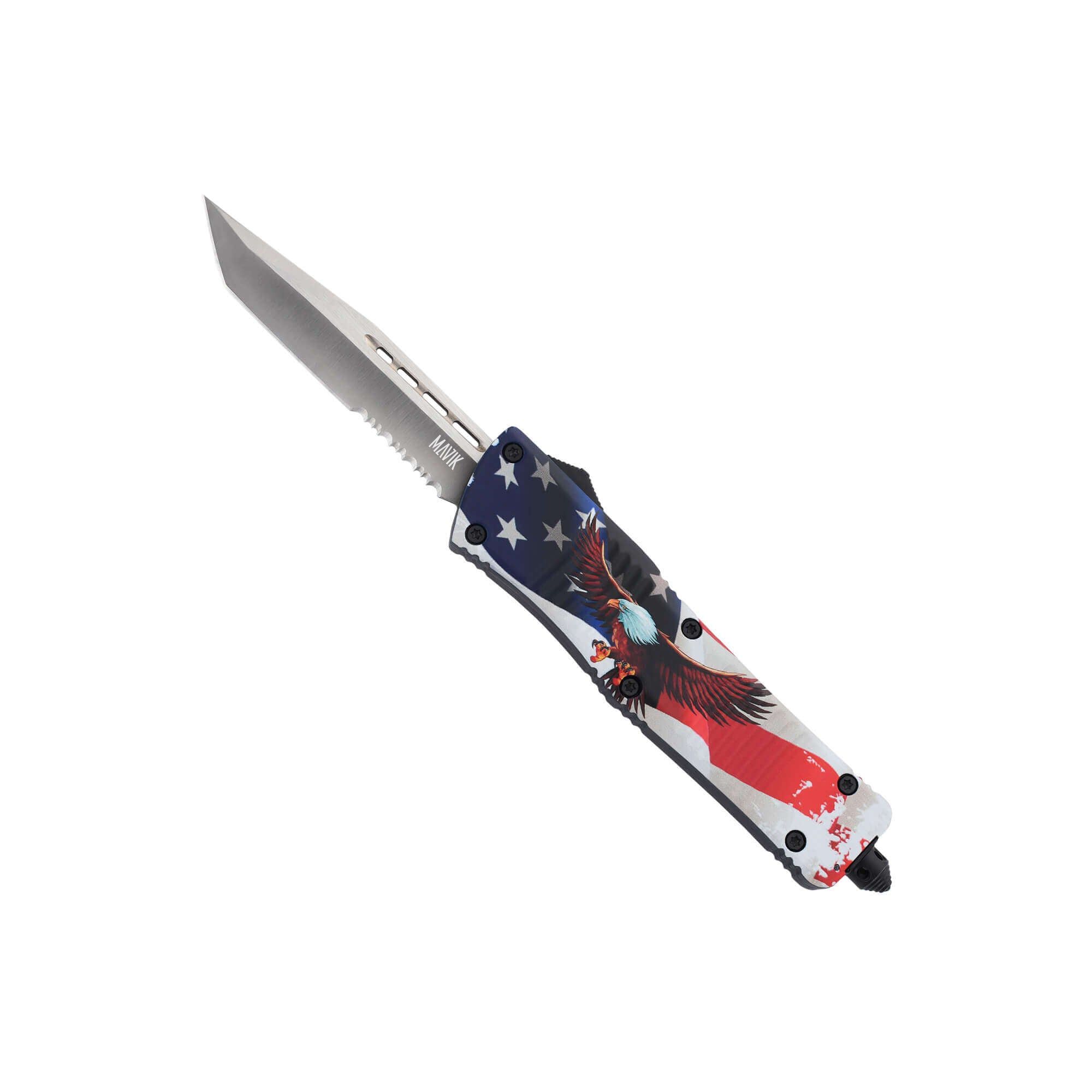 The Freedom 0704 is a limited edition knife created to honor and support those who served and continue to support freedom across the globe. This American Eagle dual-action OTF knife comes with an American Tanto serrated blade and a glass breaker that can stand the test of time.