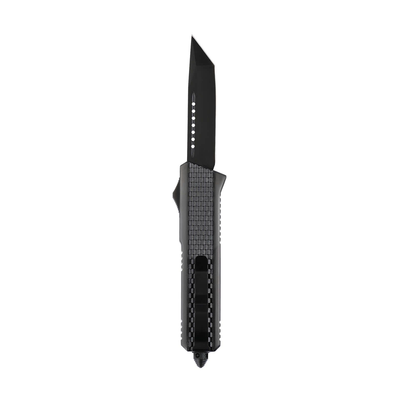 The Oran is a dual-action, automatic OTF (out-the-front) knife with an American Tanto blade designed to be powerful and resilient. One of the most powerful knives in the OTF world, the Oran features a texturized grip, hip clip, and a stylish-looking blade.